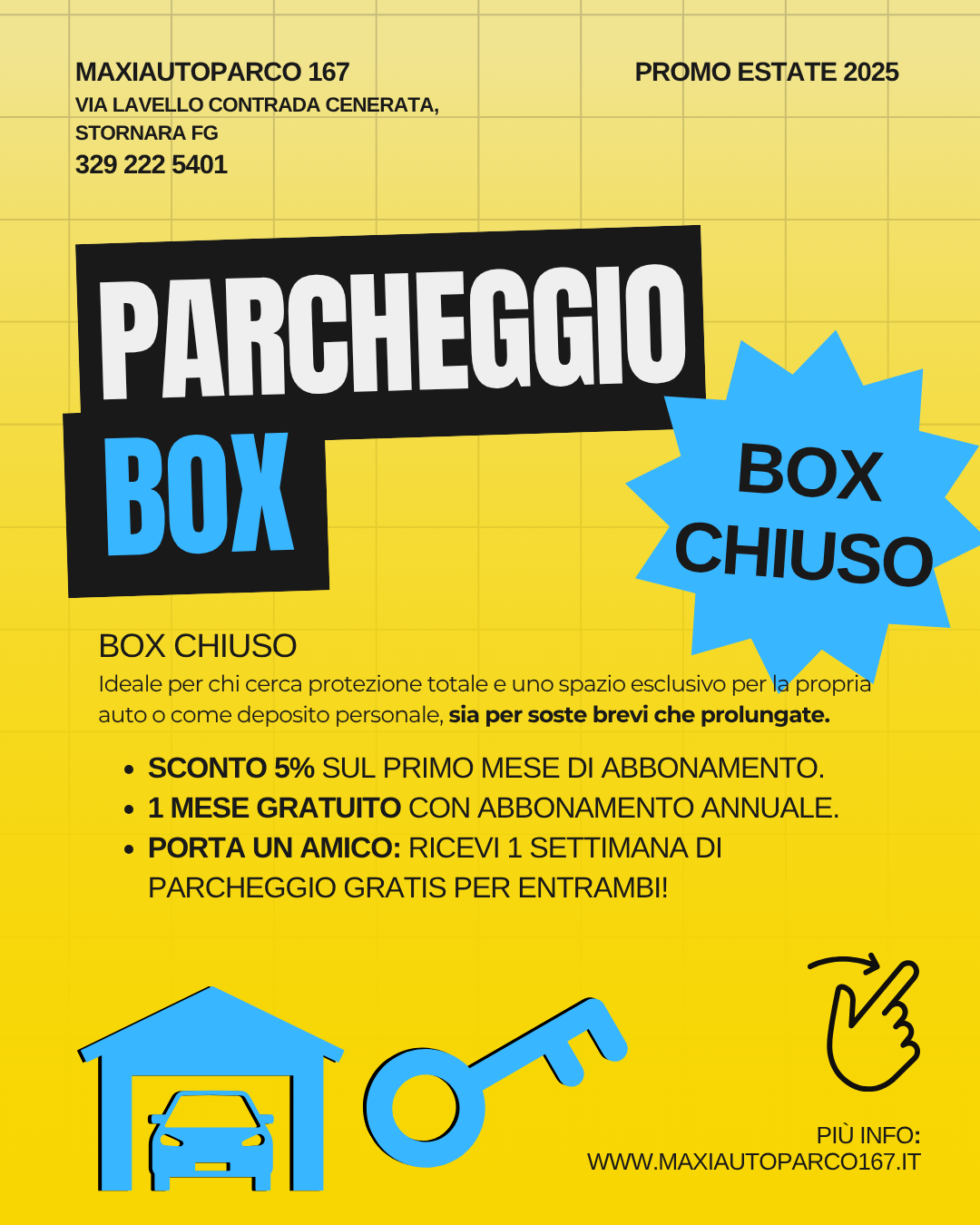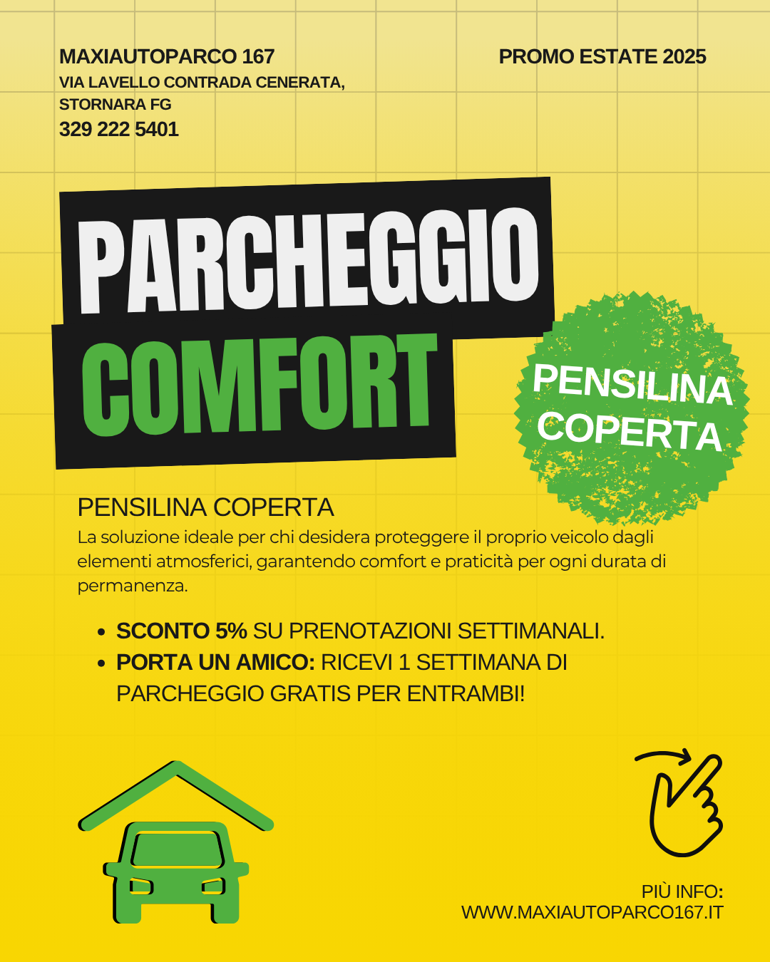 Se vuoi tenere la tua vettura a lungo, lontana da tanti pericoli, puoi rivolgerti all’autoparco Maxi Garage 167, a Stornara.